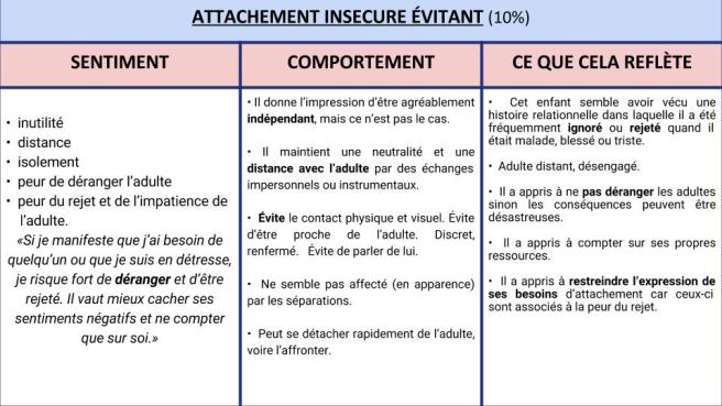 Mon propos, aujourd’hui, est de davantage faire le point sur l’attachement évitant