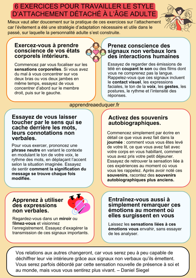 Ainsi, un adulte qui évite la proximité affective, préférant rester seul ou minimiser ses besoins relationnels.